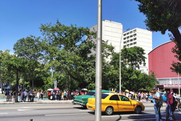 这个疑惑一直到在我办理当地的电话卡,逐渐深入了解古巴国内的基本状况时才得以解开。刚到古巴两天,每3兆6元的国际漫游使得我的手机迅速停机了,我跟房东一家表达了我上网需求的问题,问他们怎么才能买到国内来古巴旅游的游客提到的那种Wifi网卡。房东妹妹的女儿Mariem跟我解释到,在古巴有两种上网的方式,一种是像我说的那样购买Wifi卡,但这种卡极不方便,要到有Wifi的公园,酒店或者学校等地方才能上网,两个小时2CUC(约人民币15元),不限流量但限时间,但也不要以为那种Wifi会很快,一般也就是3G的速度,这是给那些短期在古巴待的人用的;另一种是古巴人才能用的卡(SIM),需要用当地人的身份证才能办理,办理一张当地卡需要40CUC,其中30CUC是为了买卡,10CUC存在卡里做话费,而这10CUC中又包含了7CUC买的600兆流量和3CUC每分钟0.25CUC的话费。Mariem告诉我,在古巴,一个古巴人的身份证只能办理三张这样子的卡,她已经办理过一张了,但她表示如果我有需要的话,她愿意用她的身份证帮我开一张当地的卡,这会让我方便和便宜很多,我感动不已。办卡的地方离住的地方只隔了两条街,我们到达的时候,已经熙熙攘攘的排了十个人左右的队伍。Mariem大声地叫唤了一下“Ultimo?”人群中最后一个人举起了手,Mariem叫着我站在了他们后边。Mariem告诉我,在中国你们肯定没有这样的“文化”,但在古巴这种“文化”是独特的,因为古巴处处都需要排队:无论是公交车站,银行,商店,药店,打印店…..只要有很多人排队的地方,你都需要大声叫一下“Ultimo?”确认了谁是最后一个人之后站在他们的后边;同样,当别人这样叫唤的时候,如果我是最后一个,我也需要举起手来示意我是最后一个。第一次听到这样的事情让我觉得十分有趣。Mariem告诉我,虽然在古巴处处都需要排队,但几乎没有人会插队,对于那些插队的人,他们会遭到白眼和唾弃,人们叫这样的人为“Descaro simberguenza”(无耻的无赖)。
