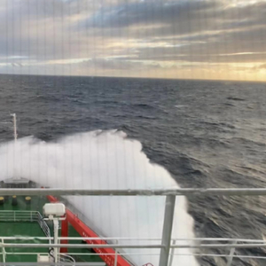 从霍巴特的港口出来两三个小时之后, “雪龙”就遇到第36次南极科考出发以来最大的风浪,船上天气预报显示,未来48小时涌浪为4米到4.5米。