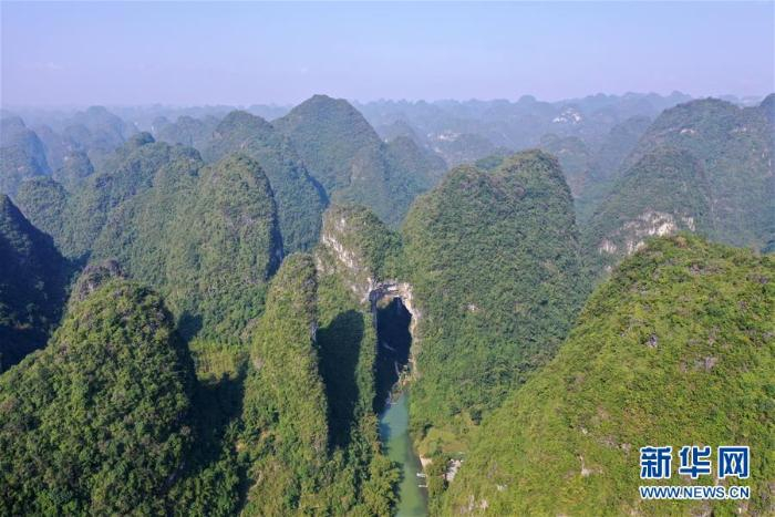 这是广西罗城国家地质公园天门山山洞(11月7日无人机拍摄) 新华社记者 陆波岸 摄
