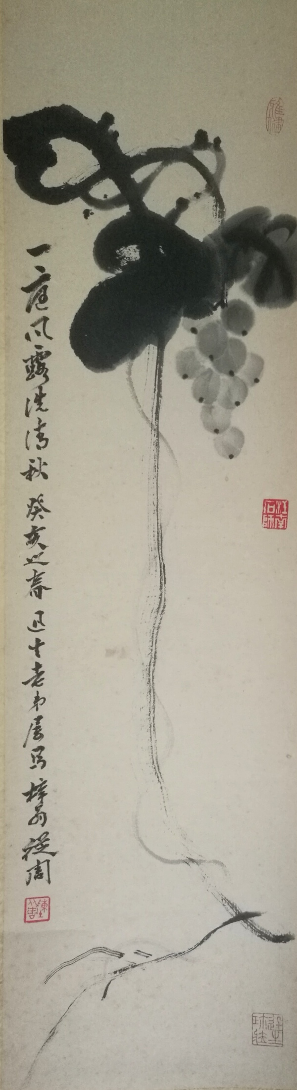 “竹里霜催野果红,秋禽无语对西风,嫣香不道春间路,还与疏林斓熳通,从周写秋实霜禽,稚柳补竹曰因题,时戊子初秋 ”