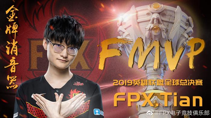 赛后,FPX打野Tian(高天亮)被评为MVP,他说:“之前在国内看评论很多人说我的风格像谁谁谁,之前一直没有机会证明我自己,现在有了,我想说我就是我自己,我就是Tian!”