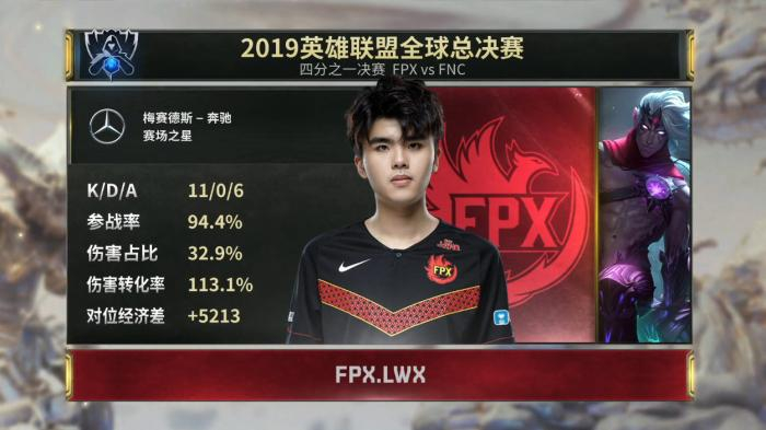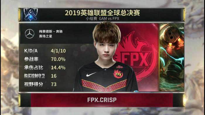 FPX在淘汰赛中,展现出了和小组赛不同的状态,3:1战胜FNC挺进四强。对阵欧洲战队,完全是客场作战,要面对的除了对面的五个选手,还有满场的欧洲粉丝给予的压力。比赛后,FPX辅助选手Crisp(刘青松)说:“他们太吵了,我想把他们打得安静一点。”