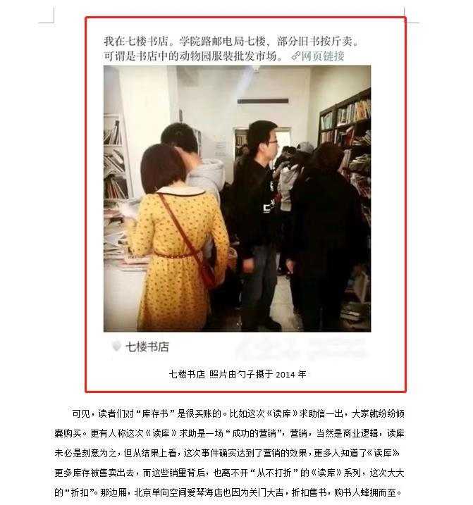 可见,读者们对“库存书”是很买账的。比如这次《读库》求助信一出,大家就纷纷倾囊购买。有人称这次《读库》求助是一场“成功的营销”,营销,当然是商业逻辑,读库未必是刻意为之,但从结果上看,这次事件确实达到了营销的效果,更多人知道了《读库》,更多库存被售卖出去,而这些销量背后,也离不开“从不打折”的《读库》系列,这次大大的“折扣”。那边厢,北京单向空间爱琴海店也因为关门大吉,折扣售书,购书人蜂拥而至。