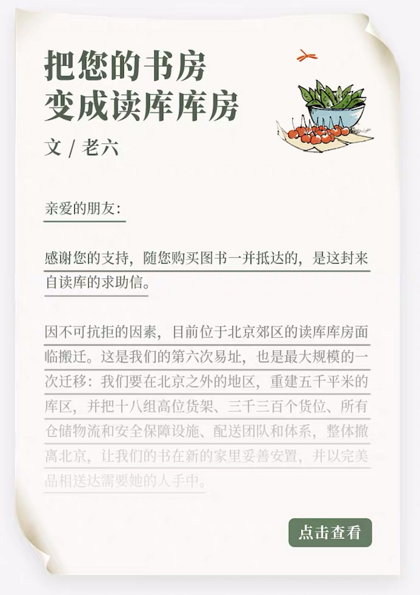 一个出版社有多少库存书,读者们未必知晓。近日,《读库》张立宪发文求助一事,令人动容,虽然是仓库移址问题,其库存量也可见一斑,天猫读库旗舰店促销信息中,还有一类为“霸占库位的元凶”,读者们纷纷“伸出援手”,彰显“英雄主义”。