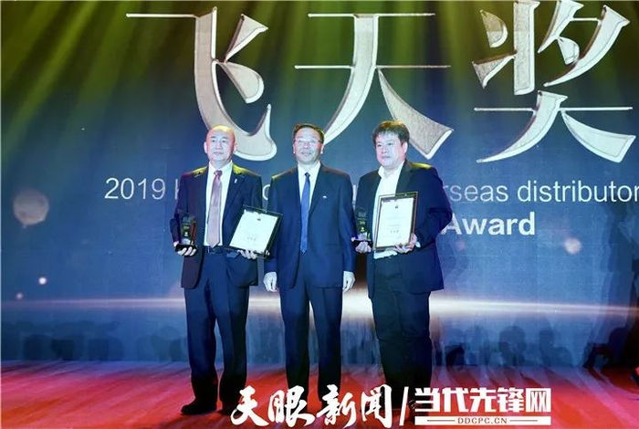 茅台集团党委书记、董事长李保芳向优秀海外经销商颁发飞天奖