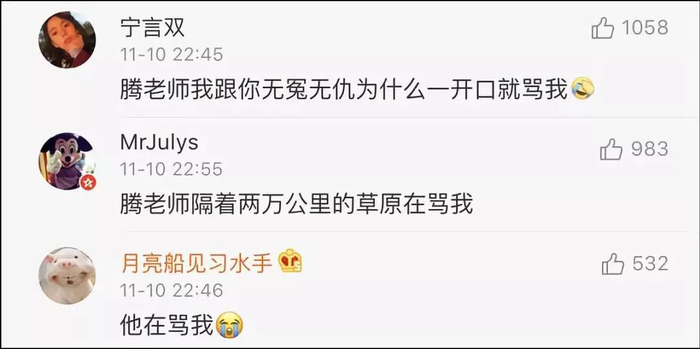 网友调侃道,“腾格尔老师,我怀疑你在骂我,而且我有证据……”