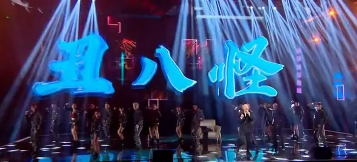 舞美效果也是魔鬼,副歌一进,大屏幕上直接闪出了三个占全屏的大字——丑 八 怪,还各种变色不断强调。