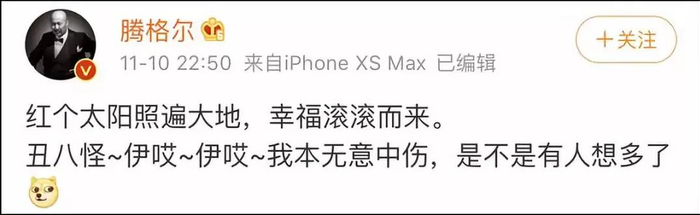 对于网友们的“小委屈”,腾格尔老师事后则幽默回应“我本无意中伤,是不是有人想多了?(狗头)”