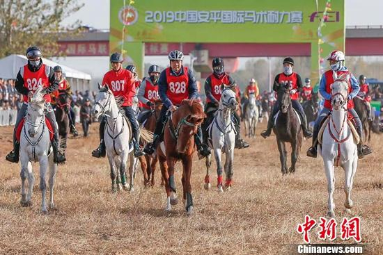 中新网北京11月11日电 2019中国安平国际马术耐力赛11月10日在河北省衡水市安平县滹沱河畔开赛。最终,来自北京康西马会的赛音毕力格总用时3小时50分20秒获得80公里耐力赛冠军,来自北京乐奇马会的满都拉图总用时3小时50分23秒获得亚军,来自中奥邦成的哈斯青格乐总用时3小时50分29秒位列第三。