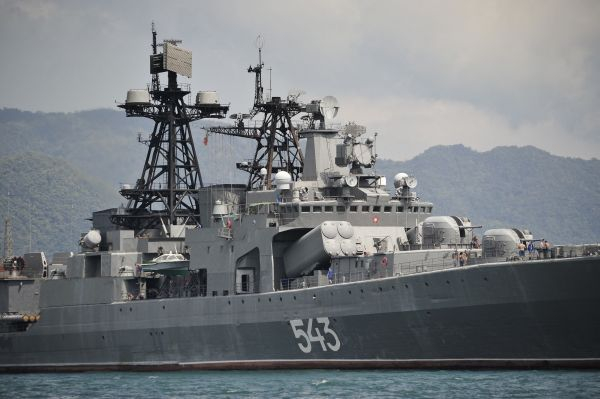 资料图:俄罗斯无畏级“沙波什尼科夫海军元帅”号大型反潜舰。新华社记者杨光摄