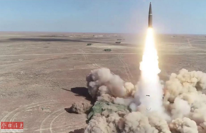 参演俄军发射“伊斯坎德尔”-M战术导弹瞬间。