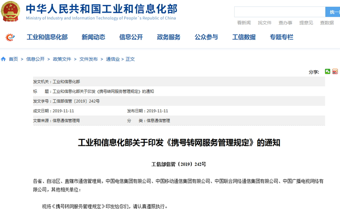 工信部同日发布的《携号转网服务管理规定》则明确,电信业务经营者在提供携号转网服务过程中,不得出现9类行为。