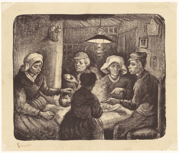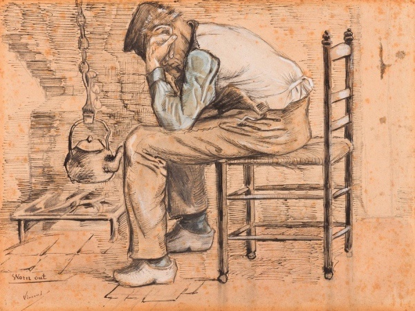 “自学起步”展示了1881年-1883年最早期的一批创作,这批梵高作品较为罕见,主办方借助了一部分艺术基金会和私人藏家参与借展。“海牙学派”展示作品均来自哈格艺术博物馆(Kunstmuseum Den Haag),为观众普及了约瑟夫·伊斯拉尔斯(Jozef Israels)、安东·莫夫(Anton Mauve)等代表的荷兰传统绘画,对照梵高早期临摹的习作,沉闷昏暗的色彩一如他的“老师们”。在梵高艺术生涯的初期,“农民画家的梦”就体现了他对乡村题材的热切向往,田间劳作的农夫和墙角端坐的农妇经常出现在他作品中。