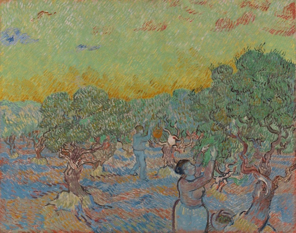 《橄榄园和两个采摘橄榄的人》,1889年,梵高