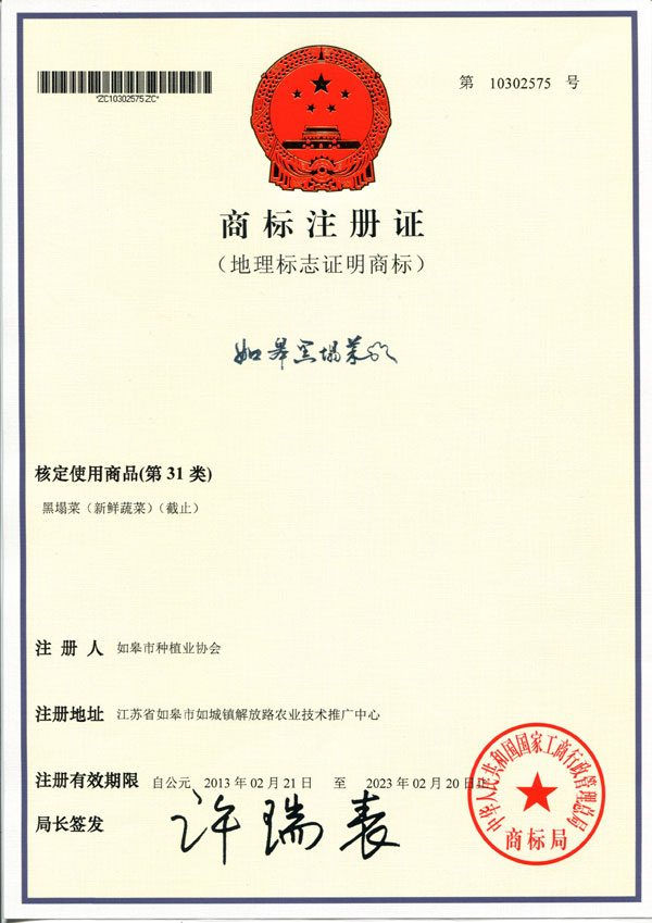 黑塌菜在如皋种植历史悠久,史载“九月下种,十月分畦,冬后经霜更酥软”。因其株型平展、塌地生长,又被称为“趴趴菜”,霜冻后更加味甜鲜美、质地柔嫩、清香爽口,还富含大量维生素C、硒及膳食纤维、胡萝卜素等营养物质,有“腊月里黑菜赛羊肉”的美誉。因受土壤、温度、季节等多种因素制约,全国仅有如皋的少数地区可以种植黑塌菜,是有名的如皋长寿特产。2013年,如皋黑塌菜获得“国家地理标志证明商标”,2015年被评为“全国名特优新农产品”。
