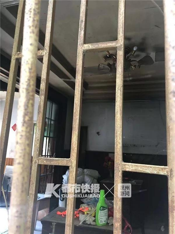 大门锁着,透过手指粗的缝隙,可以看到里面满屋灰尘,只有一床被褥和少数生活用品。屋内的一切都显得那么萧条,唯独一盏民国风的八角复古吊灯还依稀流露房子当初的风华。
