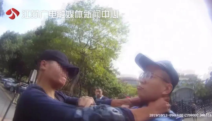 随后竟用双手掐住了一位民警的脖子,两位民警准备合力将其制服时,他又死死掰住一位民警的手,激烈反抗。