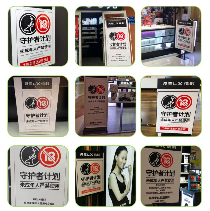 在过去一周,RELX悦刻与全体代理商、零售商携手,在线下零售网点升级了“禁止向未成年人销售”的标识使其更为醒目,并提示通过出示身份证件来验证年龄。