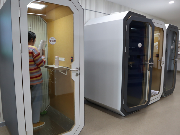 每层均设置隔音电话亭,学生可在内打电话、背英语,不打扰他人