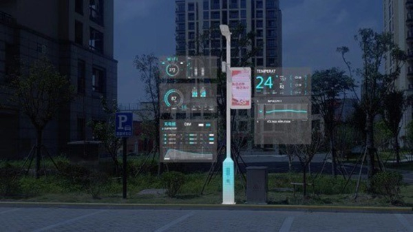 智慧灯杆集充电桩于一体实时呈现气象等信息
