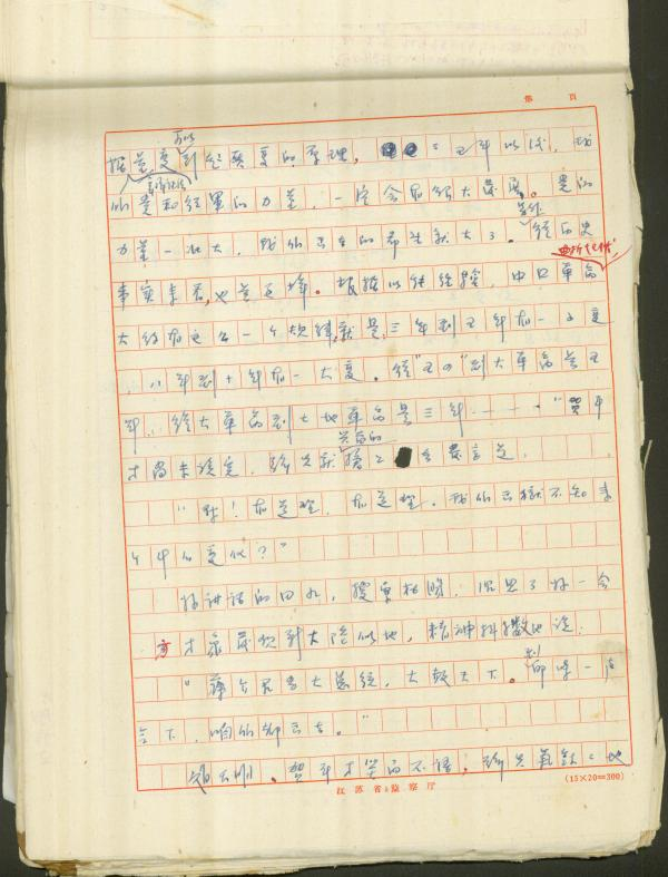 于玲同志所写的小说手稿,该页内容为赵天明在监狱中分析中国革命形势