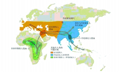 其后,4万年前生活在北亚的另一种已灭绝古人类丹尼索瓦人的全基因组也被成功解析,在亚洲大陆上的现代人群中只有极低比例(约0.3%)的丹尼索瓦人的遗传成分。反而在大洋洲的新几内亚土著人群中发现了大约6%的遗传比例,很有可能新几内亚土著的祖先在迁徙途经中南半岛时接触到了丹尼索瓦人群体,发生了基因交流。古基因组学的这些研究成果说明,包括中国人在内的现代人类主体起源于非洲,而只有极少的遗传成分来自于已灭绝古人类的杂交混血。