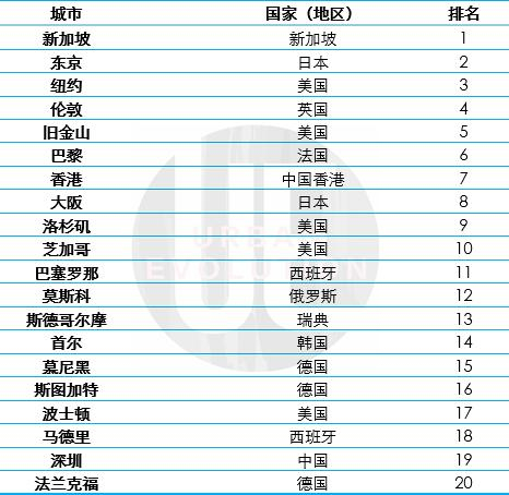 数据显示,中国今年共有2座城市进入20强,其中香港位列全球第7,深圳居全球第19位。