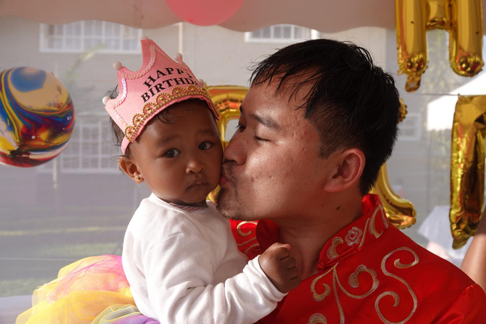 2018年9月,我们的女儿娜娜出生了,肤色偏黑色多一些,很可爱。在育儿上,我们一样存在分歧。比如,小孩子跌倒了,她们的观念里,就不会去扶,会让孩子自己慢慢爬起来;而我们中国老一辈就会马上扶起来,还会跺两脚地板,嘴里还念叨几句!