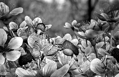 看,一亿年前的琥珀花蚤在为花传粉