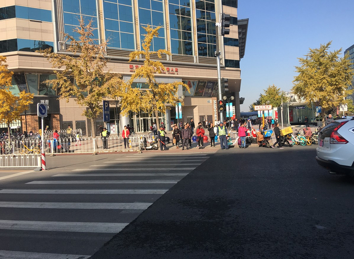 石景山区政达路与银河东街交叉十字路口,行人过马路的方式有些与众不同。除了正常的南北向、东西向通行,还有人直接走起了斜向的“对角线”。