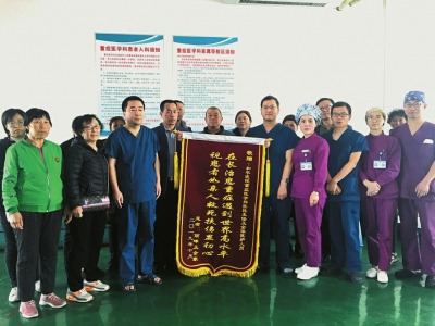 10月28日上午,张女士的母亲将一面写有“在长治患重症遇到世界高水平,视患者如亲人救死扶伤显初心”的锦旗送到张栋主任手中,以表达对该科全体医护人员精湛医术、高尚医德及无微不至照顾的感激之情。