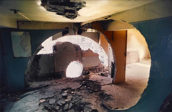 马塔-克拉克痴迷于树的另一面是他对于现代主义的批判。1968年,马塔-克拉克从康奈尔大学建筑系毕业,重返其出生地纽约,彼时的城市正承受着战后“都市更新计划”肆行以及经济转型带来的失落:诸多老旧建筑面临拆除,贫民窟遭夷平,少数族裔被驱逐……目睹了这一切的马塔-克拉克开始对建筑进行“破坏”,在他看来,现代主义建筑对几何形的迷恋就如同资本主义希望把不同阶层的个人归类到封闭的房间之中。他的“破坏”构成了穿透建筑的视觉通道,寓意了社会的运动和变化。