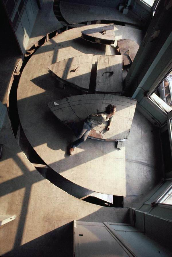 马塔-克拉克的所有建筑切割作品都没有留下来,他所切割的那些建筑往往在半小时后就要经历拆除,但是他会拍摄影像、写书,这样就能让它们的生命留下来。他可能会花两个礼拜去把建筑切开,但是也许会用接下来的五年时间去创作与之相关的艺术。