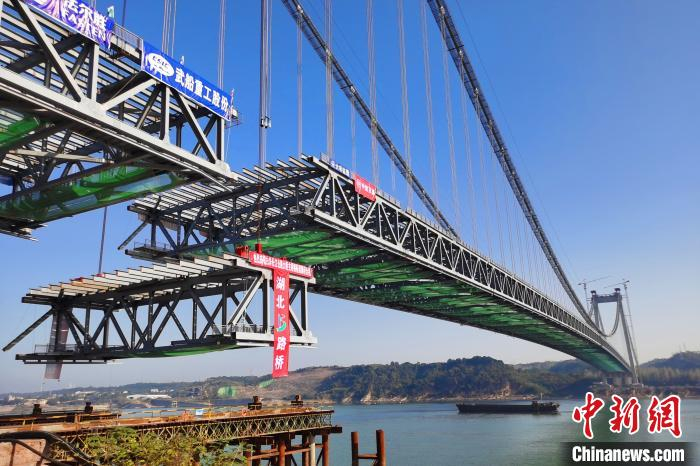 湖北宜昌白洋长江公路大桥主跨钢桁梁合龙