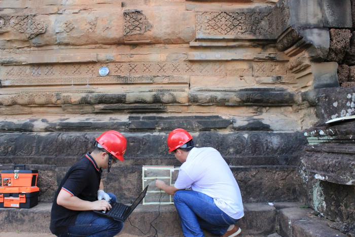 相较于周萨神庙修缮,“中国队”开展的柬埔寨茶胶寺修缮水平又上了一个台阶。据中国文化遗产研究院副院长、茶胶寺项目总负责人许言介绍,在正式开工前,工作队先花费4年时间组织了全面的前期研究工作,先后完成17项研究报告,主要涉及建筑、考古、结构工程、岩土工程、微生物等诸多学科。