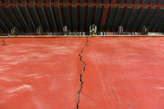 说起位于门头沟的戒台寺,京城百姓都不陌生。这座始建于隋朝开皇年间的寺院距今已有1400多年历史,以“神州第一坛”和奇松著称,每日游客络绎不绝。可是,细心的人会发现,在寺院的外墙和殿宇间,依稀可见被填充过的裂缝痕迹。这就是发生于2004年7月的戒台寺滑坡。