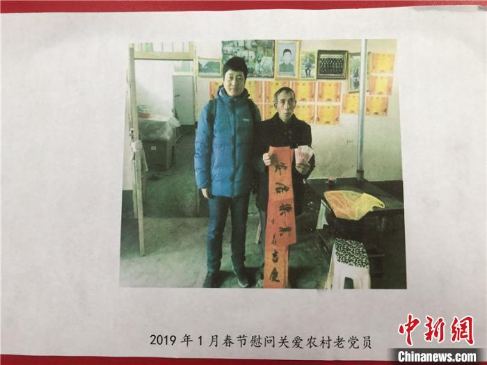 2019年1月,王超慰问村里的老党员。当地村委会提供