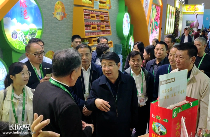 河北省农业农村厅厅长王国发与参会的河北品牌负责人交谈。 郑建卫 摄