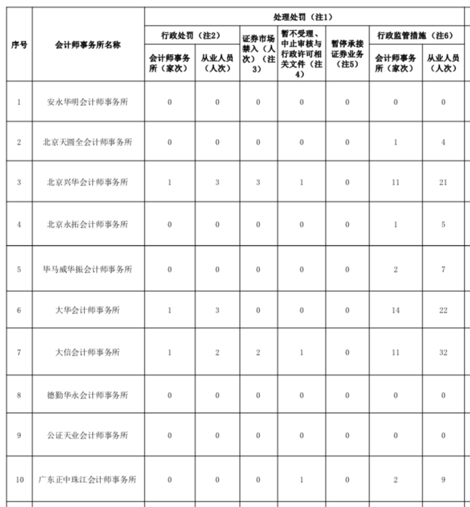 证监会发布会计师事务所执业基本信息,瑞华等五家受处罚超过21次