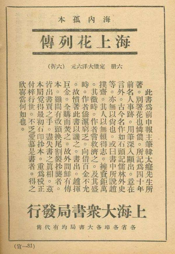 民国时期的《海上花列传》广告
