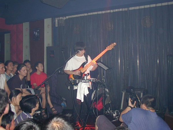 2000年,Ruins乐队在衡山路演出,在吉他手佐佐木的左边,能看到水晶蝶乐队、戈多乐队的成员。