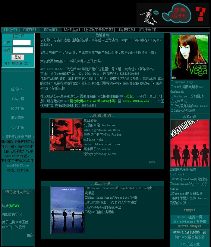 2000年,现代变奏还没有论坛化,只有一个“上海地下音乐聊天室”。