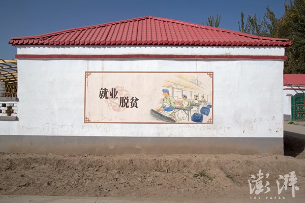 莎车县托木斯塘乡一幢富民安居房上的宣传画。