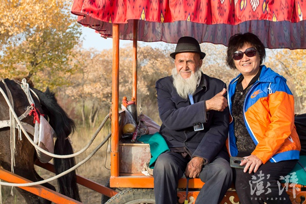 目前阿吾孜•阿迪力的工作是跟他的好伙伴——一匹枣红马载着游客兜风,游玩还能挣钱。91岁的他并不乐意呆在家里闲坐养老,他觉得工作有意思,同时还能有收入。老人来自景区内的长寿村,有9名子女,38个孙辈。援疆干部泽普县旅游局副局长朱国红介绍,还有200多名像老人这样生活在景区,并受益于景区工作的人,长寿村均已脱贫摘帽。