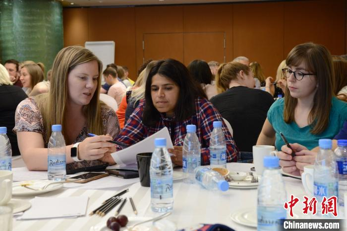 英国教师针对“模拟课堂内容”进行现场讨论 。 李立基 摄