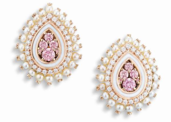 阿盖尔彩粉红色钻石配小珍珠石耳环一对, Sarah Ho设计