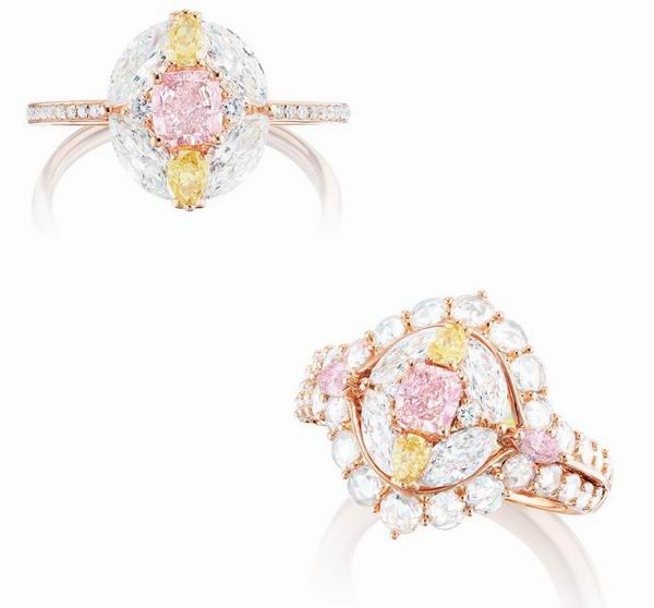 阿盖尔浓彩粉红色钻石配黄色钻石及钻石戒指,Paige Parker设计