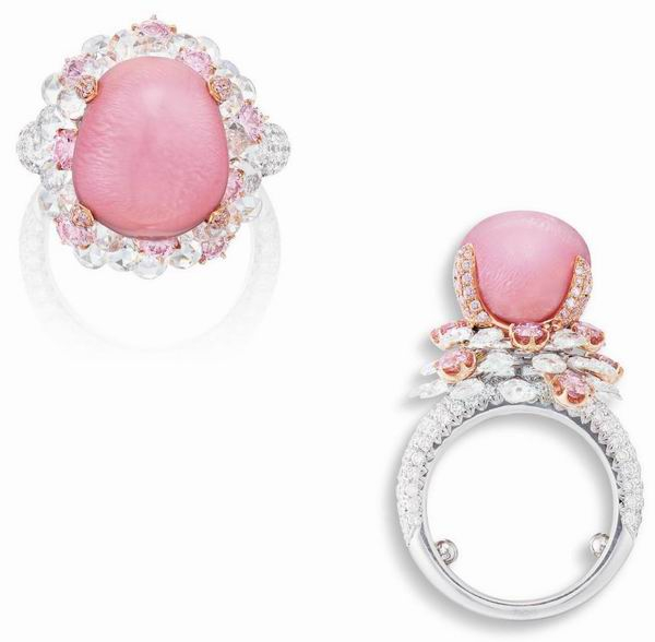 天然粉红色海螺珠配阿盖尔粉红色钻石及钻石戒指, Karen Suen設計
