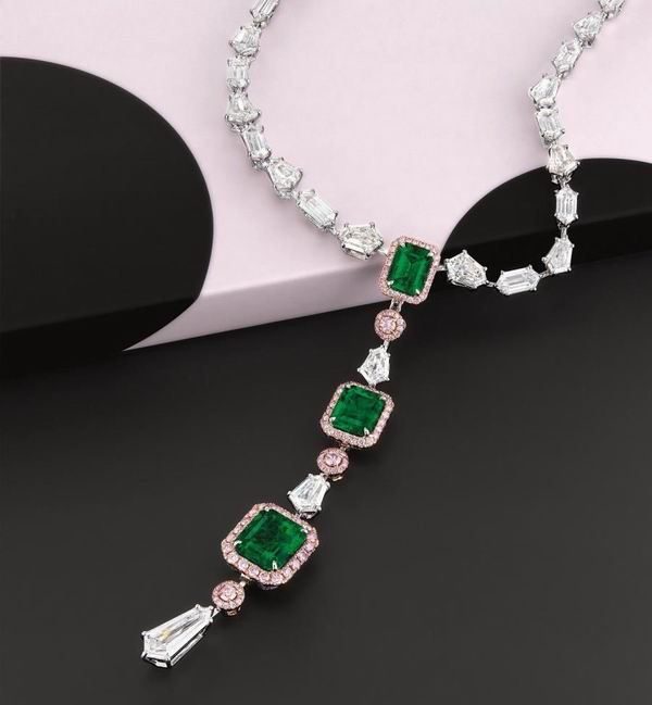 “哥伦比亚穆索”祖母绿配“阿盖尔”粉红色钻石及钻石项链