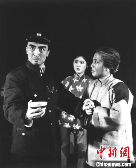 《红灯记》老照片,李少春(前左)饰李玉和,高玉倩(前右)饰李奶奶,刘长瑜(后)饰李铁梅。国家京剧院供图